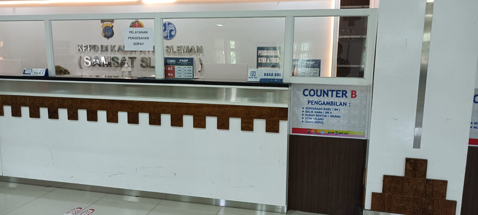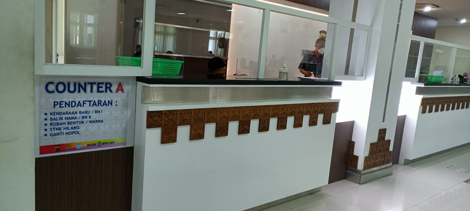 - Pada tanggal yang telah ditentukan pada tanda terima pendaftaran, pemohon datang ke Counter B untuk melakukan pembayaran bea balik nama, pajak kendaraan bermotor dan PNBP STNK dan TNKB. Pemohon menyerahkan tanda terima pendaftaran kepada petugas di counter B.
